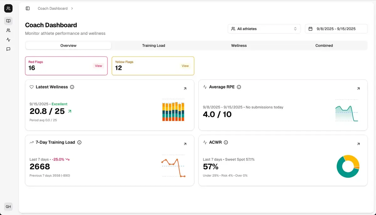 Instant insight ✳︎ Athlete wellness ✳︎ Training load ✳︎ Injury risk ✳︎